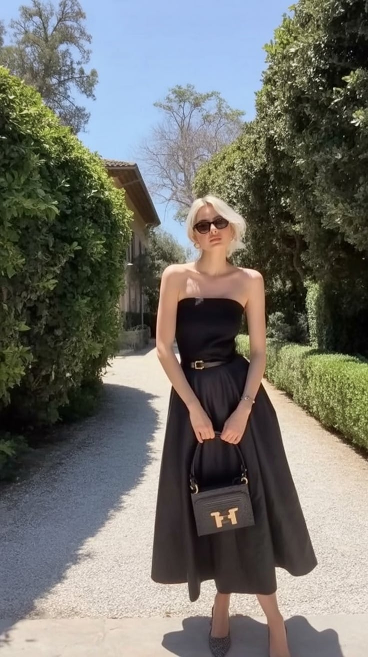 A strapless black dress worn with poise offers a timelessly dramatic, yet restrained statement. Its classic lines exude sophistication without excess, perfectly embodying the ethos of old money style through minimalist power and quiet impact.