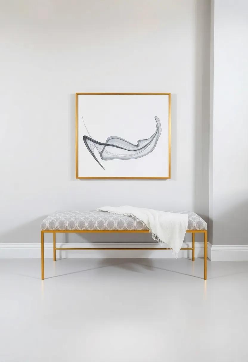 The Modern Minimalist – A sleek,low-profile bench with a minimalist design accentuated by brushed gold hardware,perfect for a contemporary space