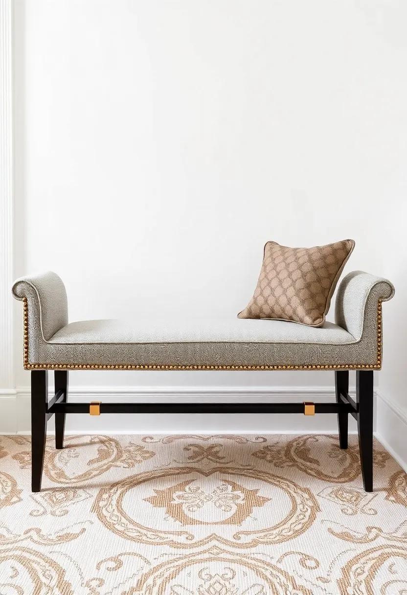 Imagine sinking into a moment of tranquility as you settle on a beautifully appointed bench in your bedroom. Opt for a piece that showcases natural fabrics, such as soft linen or organic cotton, which adds a layer of comfort while promoting a soothing ambiance. Accentuating these materials with soft gold details can elevate the overall aesthetic, infusing a hint of luxury that invites relaxation. Look for benches that feature gentle curves or minimalist designs, ideal for reflecting the calming vibes of a serene spa atmosphere.