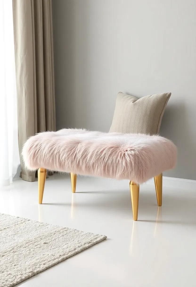 Picture this: a plush furry bench that beckons you to sit down and unwind after a long day. its soft texture makes it not just a functional piece of furniture, but a comforting oasis in your bedroom. The glossy gold legs add a hint of glamour, contrasting beautifully with the inviting fabric. whether you choose a neutral tone or a vibrant color, this bench serves as a playful accent that can effortlessly uplift your space. It achieves the perfect balance of whimsy and sophistication,making it suitable for various bedroom styles,from modern chic to bohemian retreat.