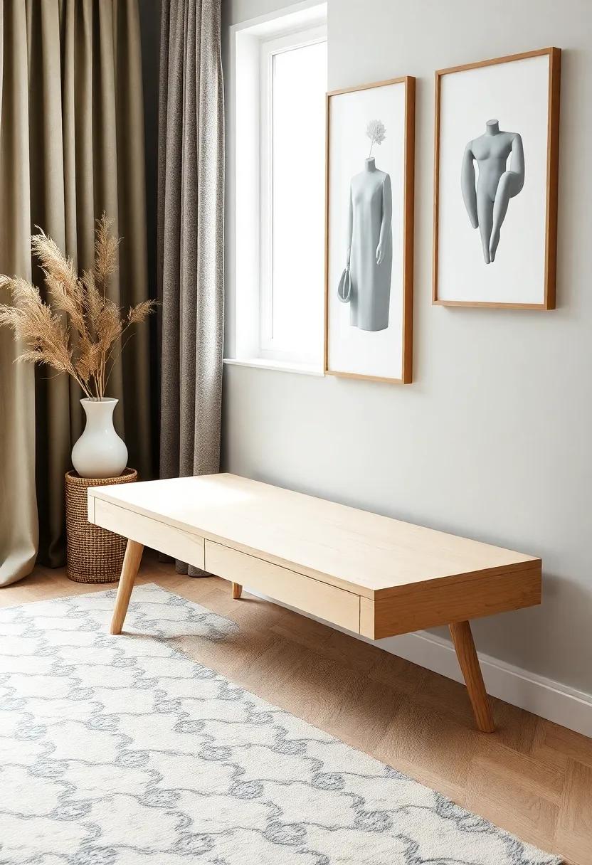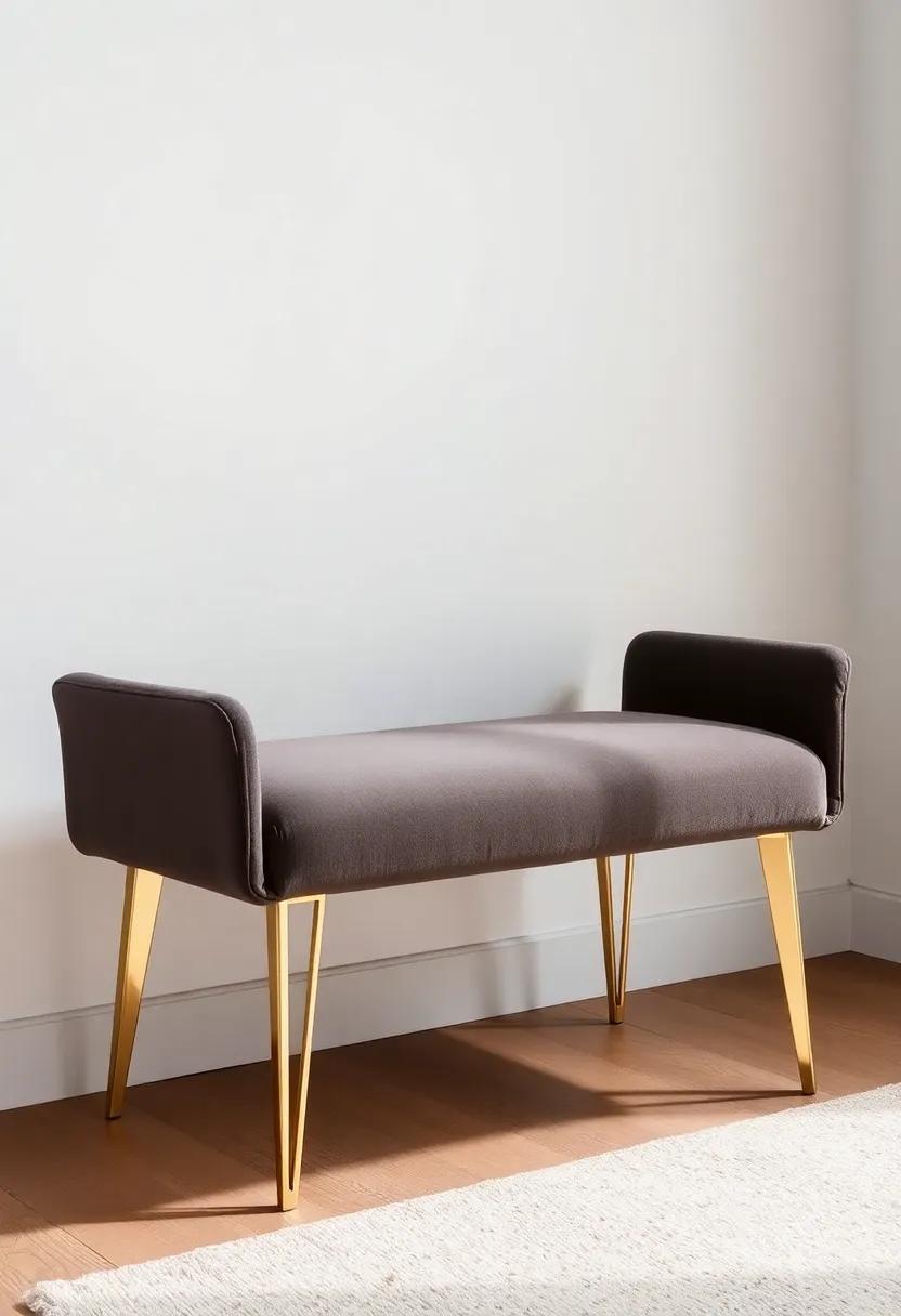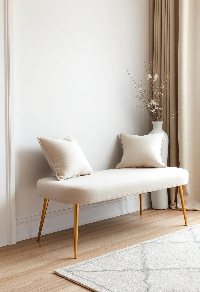 The Modern Minimalist – A sleek,low-profile bench with a minimalist design accentuated by brushed gold hardware,perfect for a contemporary space