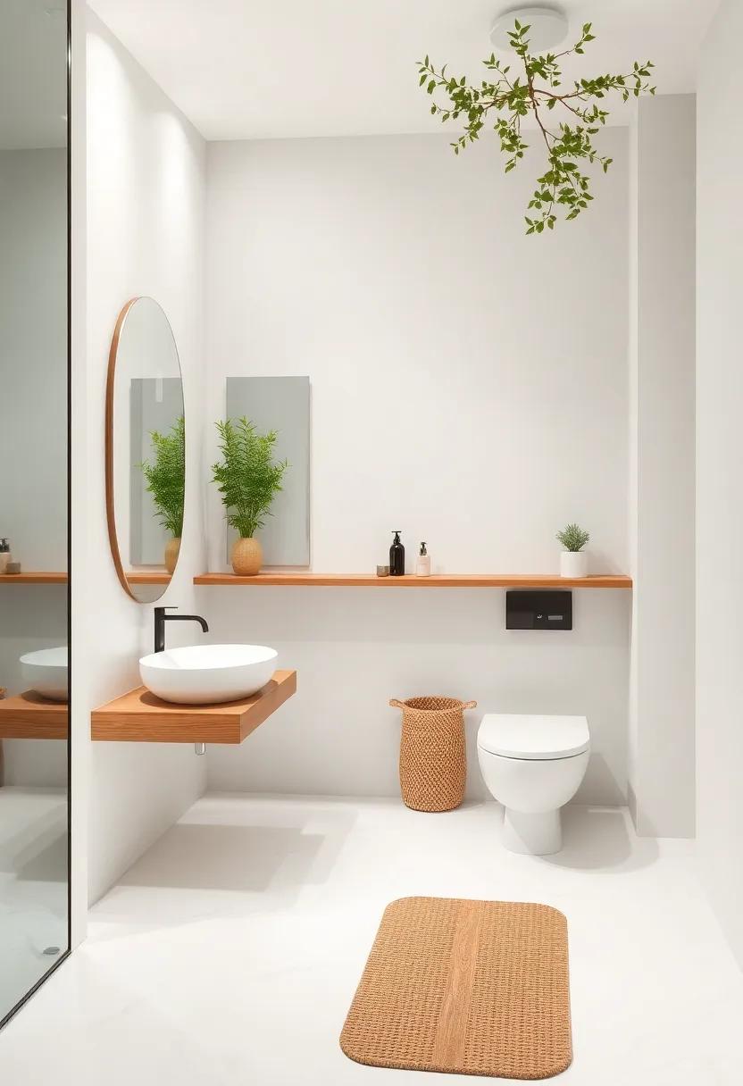 Natural Materials: Incorporate wood accents such as bamboo shelving or teak mats to add warmth and texture that contrasts beautifully with sleek surfaces
