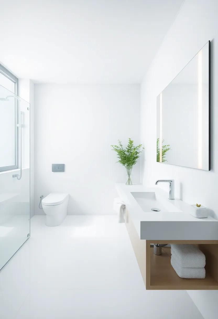Smart Bathroom Tech: Integrate heated floors, touchless faucets, or smart mirrors to combine contemporary technology with modern design