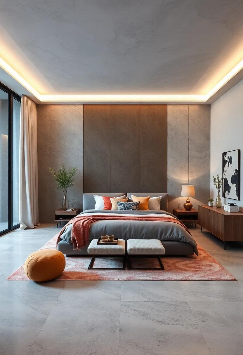 - Floating Bed Arrangement: Position your bed away from walls to create a central focal point, adding nightstands and decorative lighting for balance.