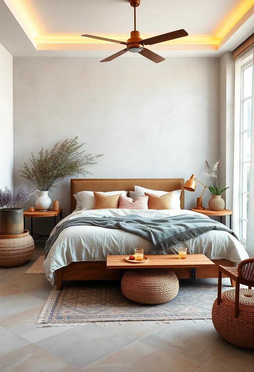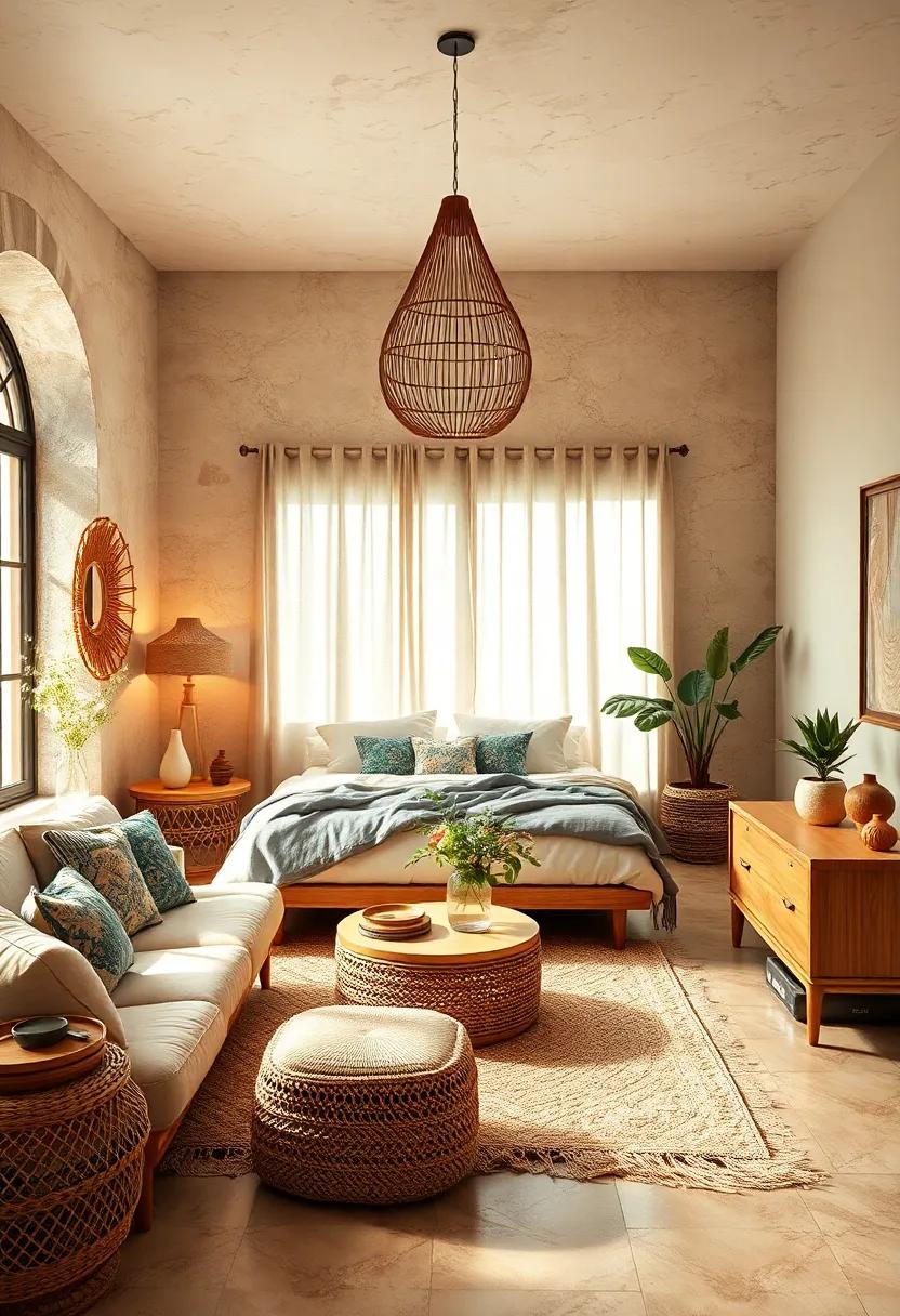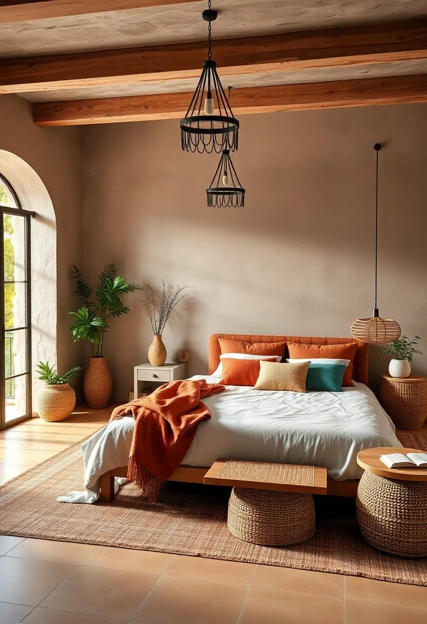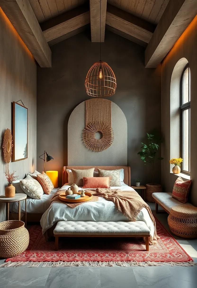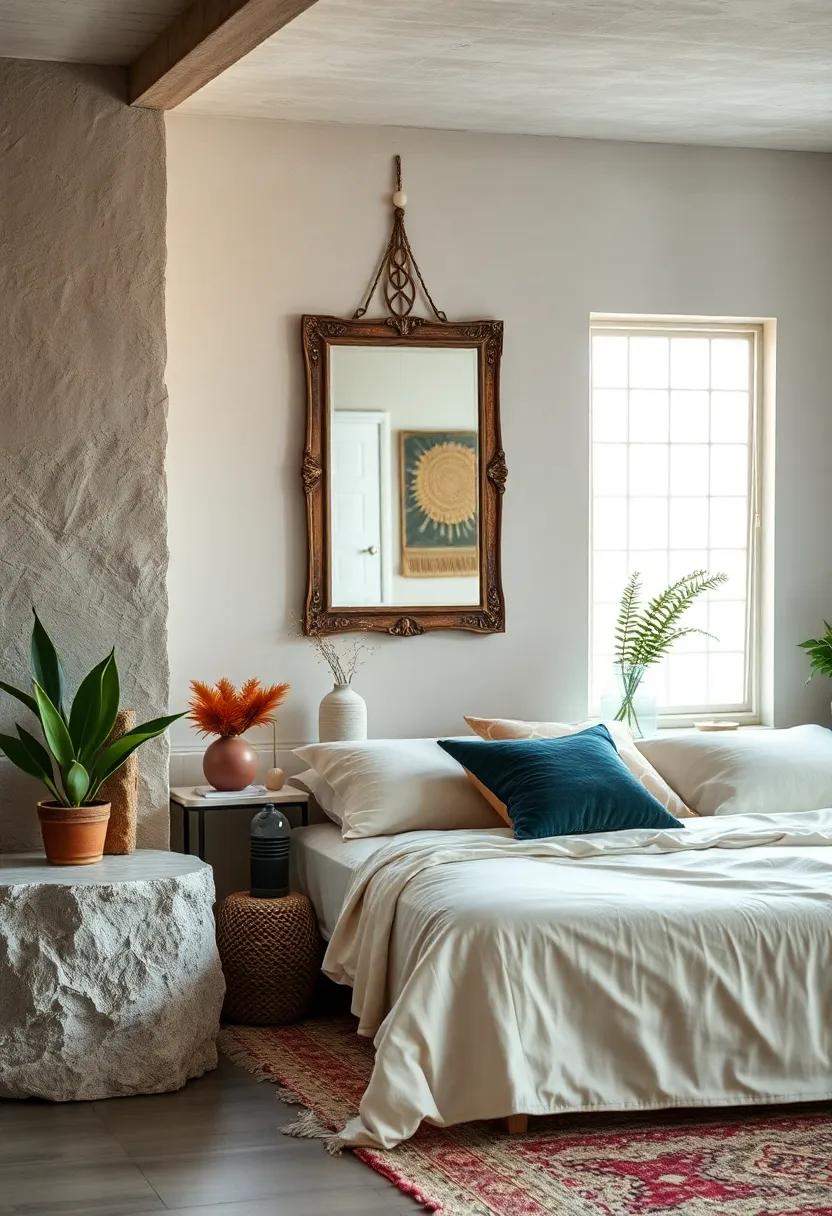 Enhance your bohemian aesthetics further by opting for furniture pieces that boast unique, organic shapes. Explore a mix of finishes, from raw to polished, to create a visually exciting yet harmonious space. Use large wicker baskets to store throws or pillows, which also serve as functional decor. To maintain a cohesive look, consider a wooden bed frame paired with rattan nightstands, allowing you to weave together different textures and styles that mirror the simplistic beauty of nature.