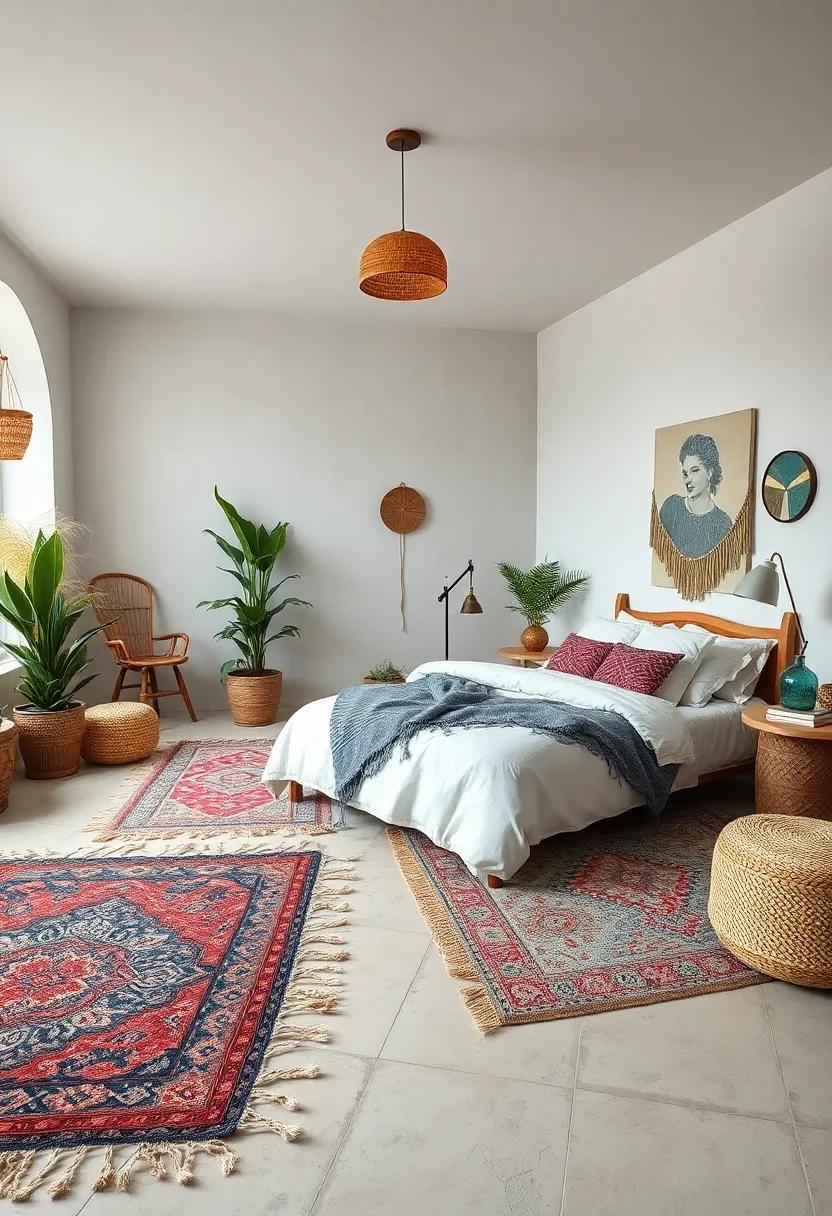 Artistic Rugs: Layer different rugs underfoot, mixing textures and patterns for a bohemian flair that also warms the space