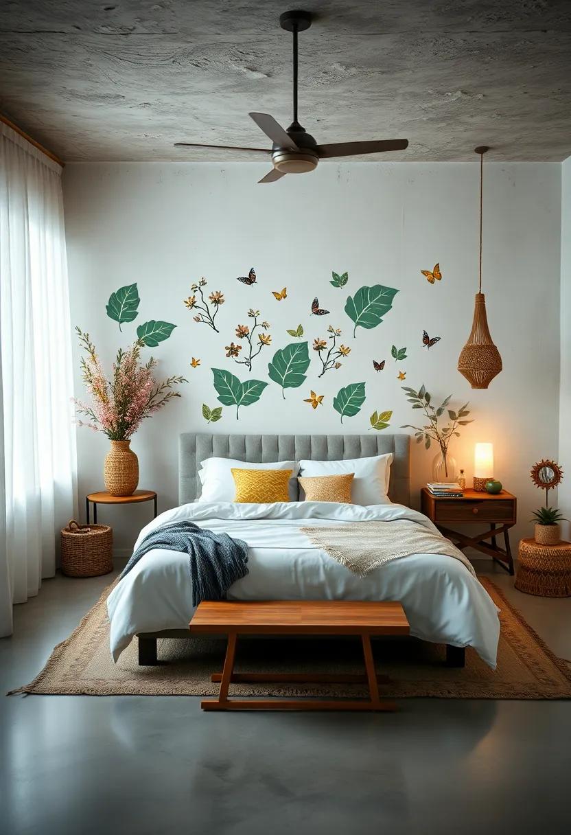 Earthy Decals: Use wall decals inspired by nature, such as leaves and flowers, to bring the outdoors inside without permanence