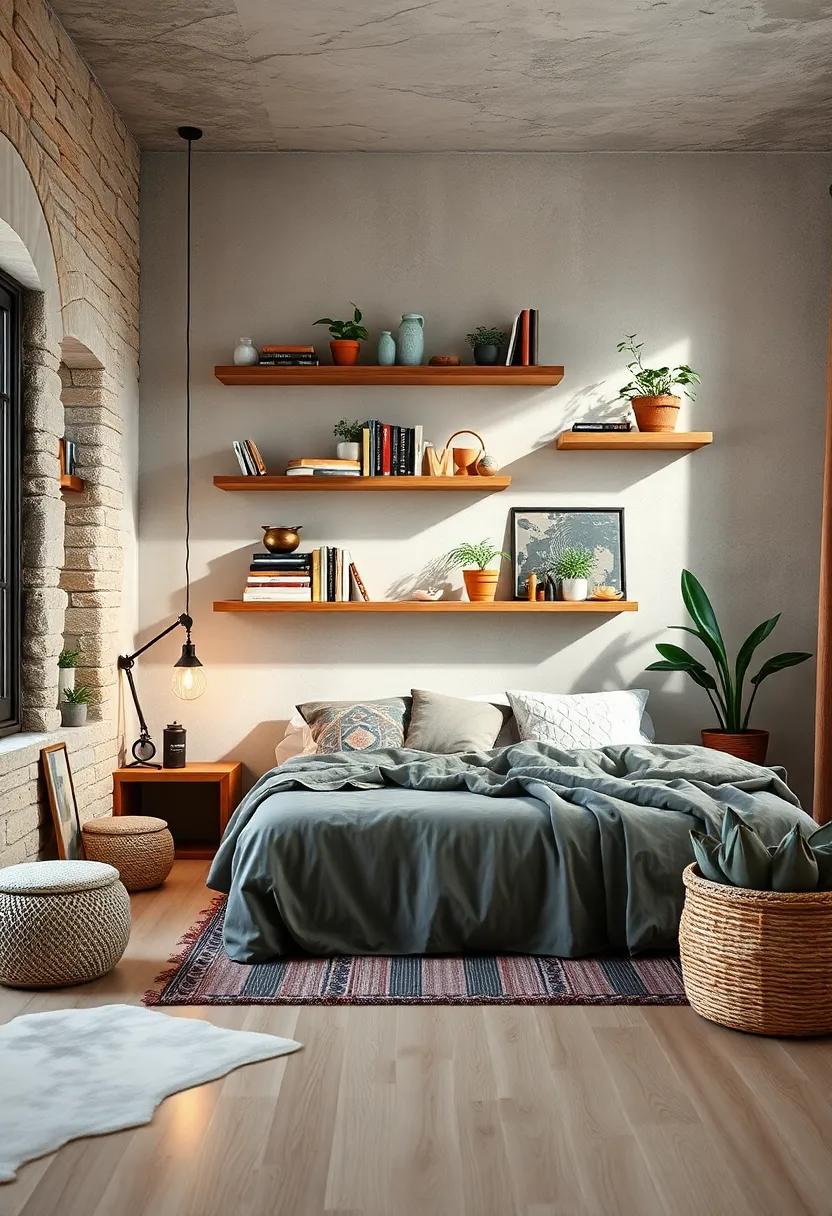 Floating shelves bring an effortless charm to any bedroom, providing a stylish way to showcase your cherished items while maintaining an open and airy vibe. Books, ofen a reflection of your personality, can be artfully arranged in rows or stacked diagonally for a more eclectic look. Complement the literary treasures with potted plants—think trailing vines or succulents—that not only add a splash of greenery but also purify the air, enhancing the bohemian ambiance. A well-curated mix of trinkets—such as vintage finds,handmade ceramics,or travel souvenirs—can sit alongside candles or fairy lights to create a cozy,personalized display.