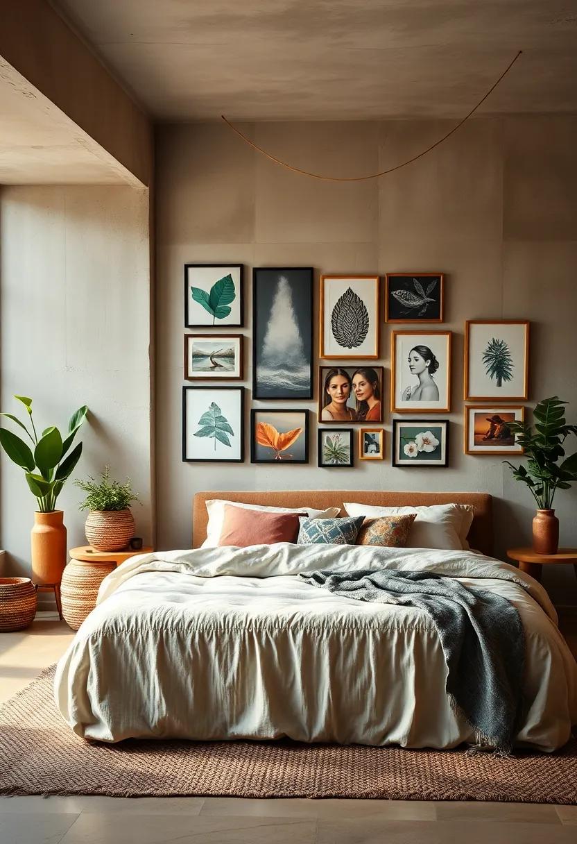Transform your bedroom into a vibrant reflection of you by creating a gallery wall that showcases your favorite art and photographs. Choose pieces that evoke personal memories or emotions, such as: