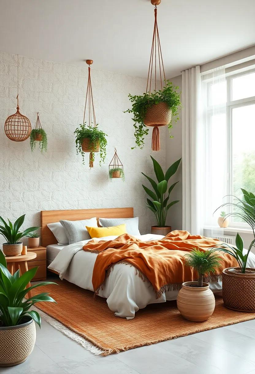 Transform your bedroom into a serene haven by incorporating a variety of potted plants and hanging planters. Foliage not only lends a touch of natural beauty but also acts as a natural air purifier, creating a healthier indoor environment. Consider plants such as snake plants, known for their resilience and low-maintenance care, or peace lilies, which thrive in low light and produce stunning white blooms. You can also add hanging planters filled with trailing vines like pothos or string of pearls to draw the eye upward and create a sense of depth in your space.