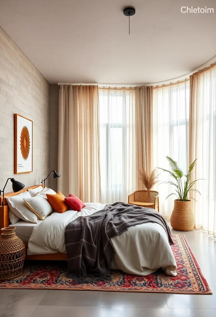 Creating a bohemian-inspired space is all about expressing individuality and embracing the eclectic. Start by layering geometric patterns with floral prints to create a visually dynamic atmosphere. Consider using a mix of pillows adorned with bold shapes that immediately capture attention, complemented by softer, botanical-themed throws that add warmth and comfort. Choose curtains with a blend of colors that tie the entire room together, allowing natural light to dance through the patterns, enhancing the overall bohemian vibe. By varying the size and scale of the prints, you’ll achieve a playful yet harmonious balance in your bedroom decor.