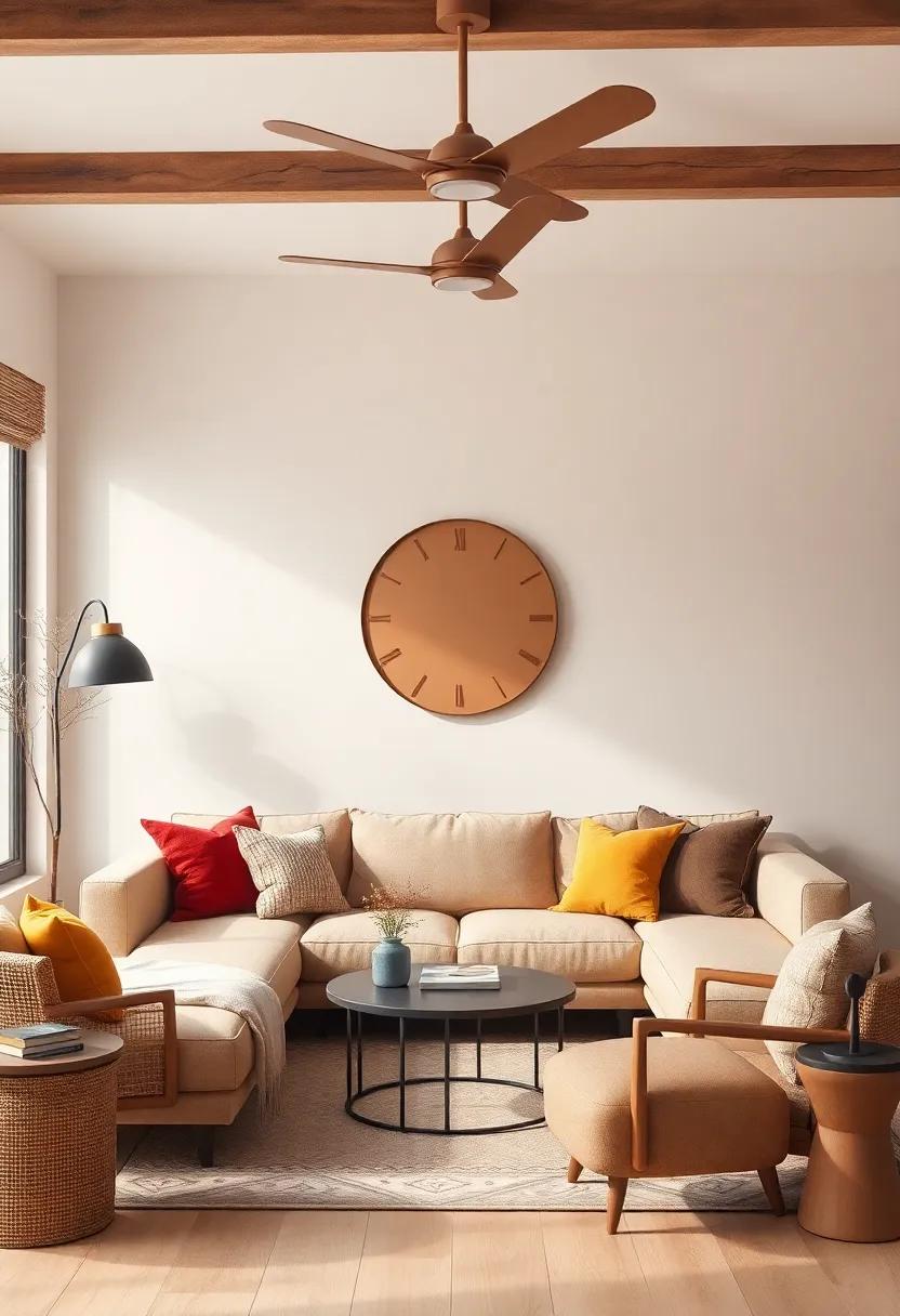 To ground the palette, integrate terracotta through accent pieces such as decorative vases, art, or a rustic coffee table, creating a delightful contrast that brings depth to the overall design. Enhance the warm ambiance with natural textures; consider wooden or wicker furniture to emphasize the homey feel. Layering the colors in different materials—soft velvets,woven textiles,and ceramic finishes—will add dimension and foster a zen-like ambience in your Mid-Century modern living room.