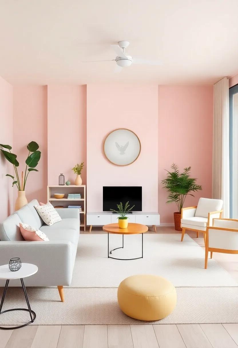 Playful Pastels: Mix soft pink, pale blue, and buttery yellow for a playful yet chic mid-century feel that’s perfect for any living area