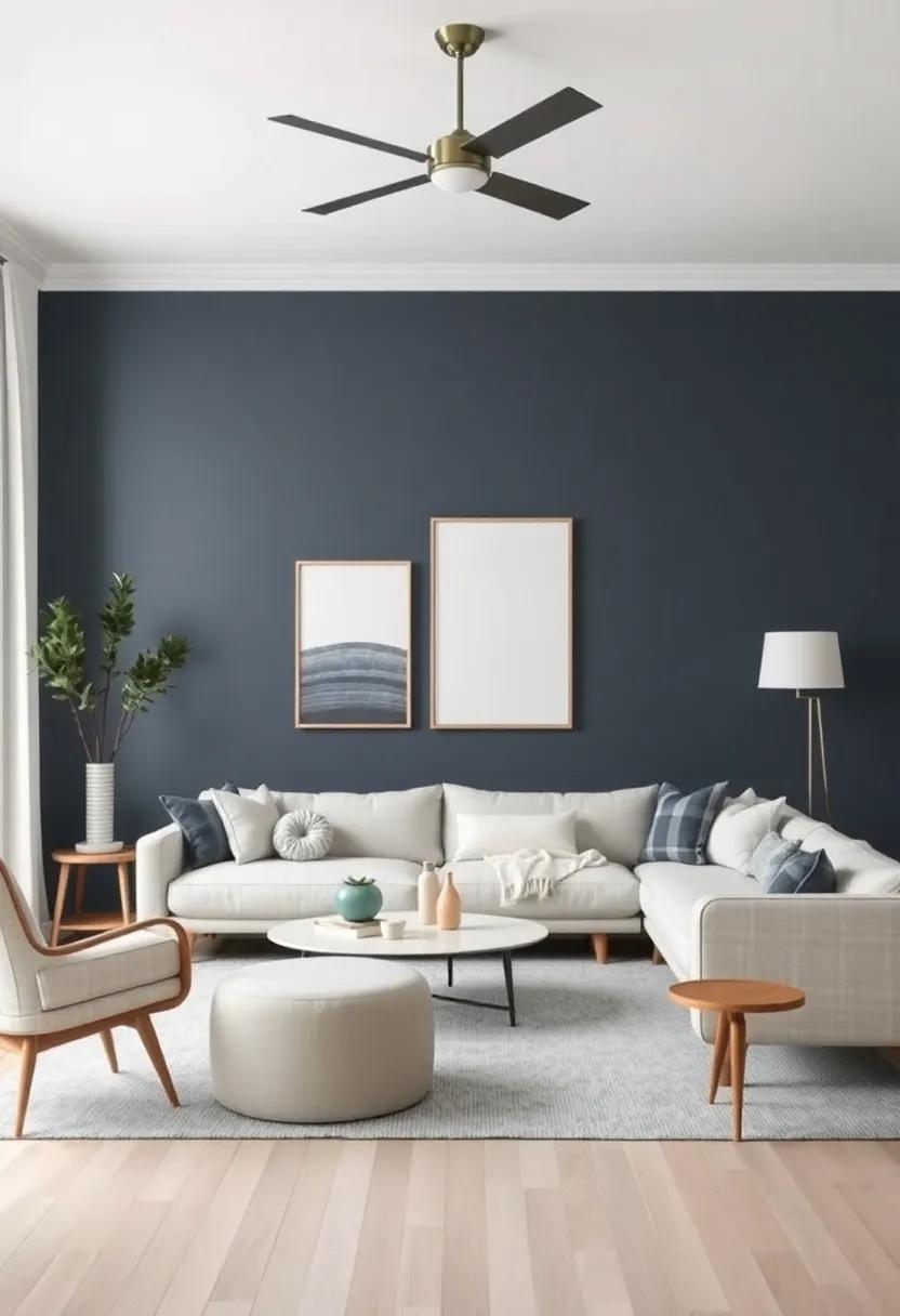 Nautical Neutrals: Embrace a nautical theme with muted navy, stormy gray, and crisp white for a fresh, timeless living room ambiance
