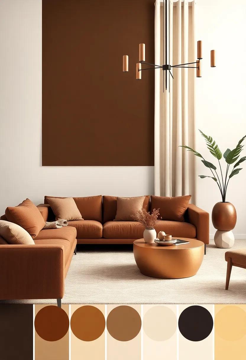 Mocha Chocolate: Indulge in luxurious deep chocolate brown, muted gold, and soft ivory for an inviting and sophisticated space