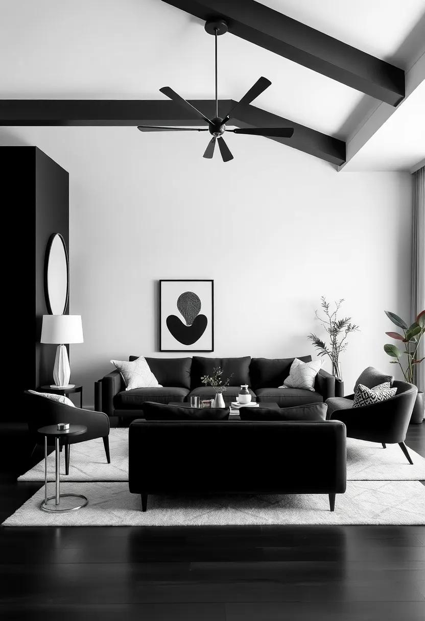 When styling your living room with this classic monochrome scheme, consider the following elements:
