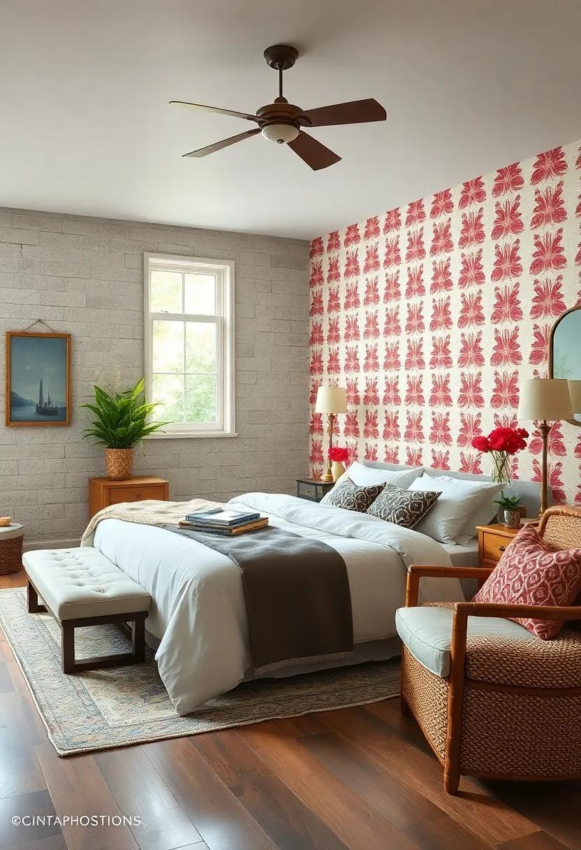 Transform your farmhouse bedroom with the daring addition of bold wallpaper that brings character and a pop of excitement. Choose patterns that resonate with the existing color scheme—think whimsical florals, rustic geometrics, or charming animal prints. By integrating these lively designs, you not only define the space but also create a delightful contrast to the sometimes muted, natural tones typical of farmhouse decor. Consider using wallpaper with textures that evoke warmth and nostalgia, bridging the gap between contemporary flair and rustic charm.