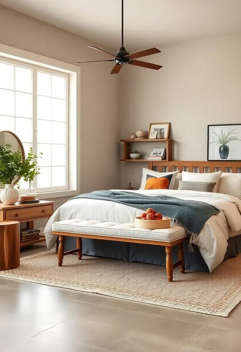 adding a cozy bench at the foot of the bed not only enhances the farmhouse aesthetic but also serves a dual purpose of seating and storage. Opt for a piece made from reclaimed wood or a painted finish in soft,muted tones to maintain that rustic charm. The versatility of these benches means they can be both functional and stylish,fitting seamlessly into your decor while providing a spot to sit when putting on shoes or enjoying a good book. you can also consider adding cushions in earthy tones or plaid patterns for an inviting touch that echoes the farm-like vibe.