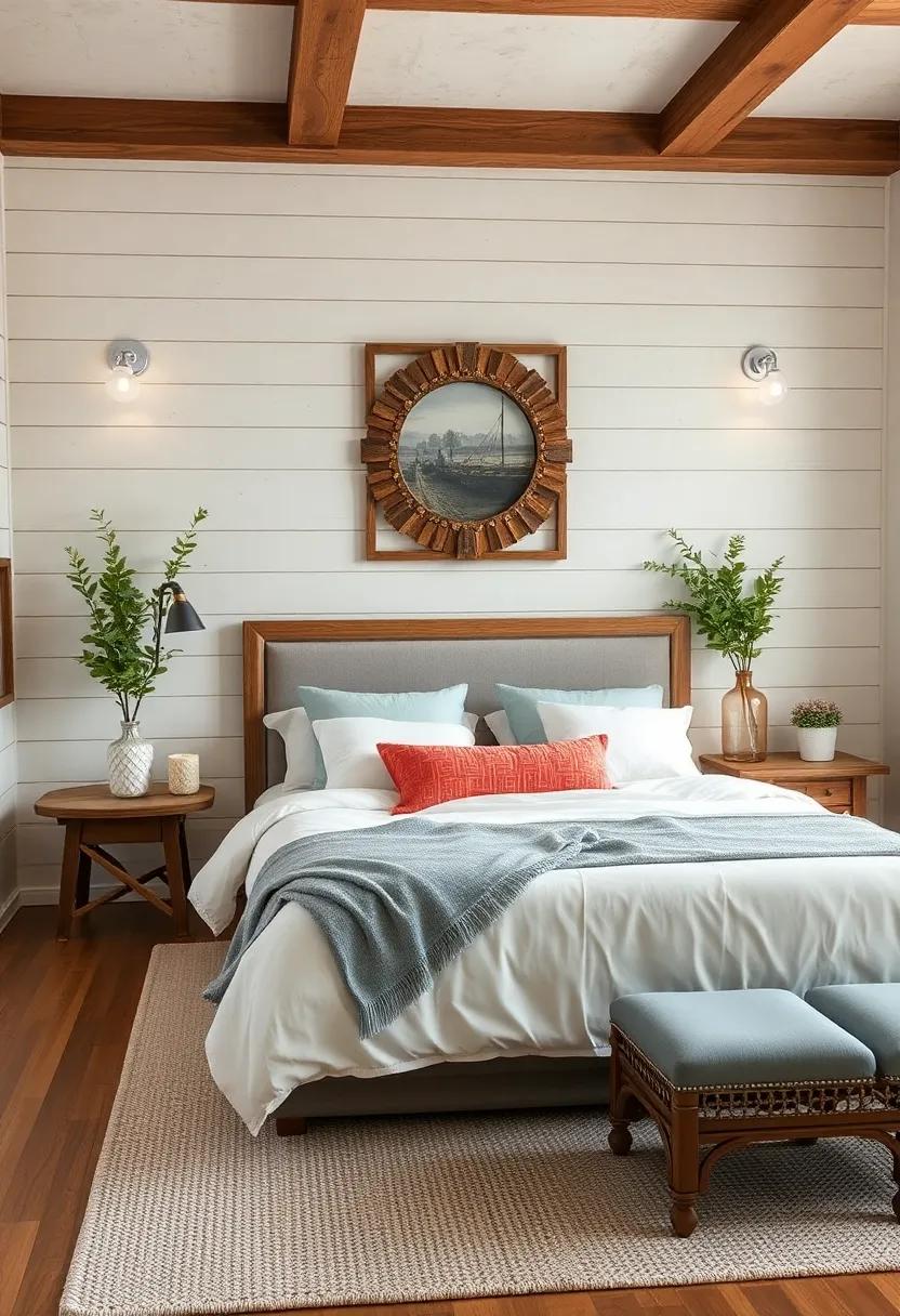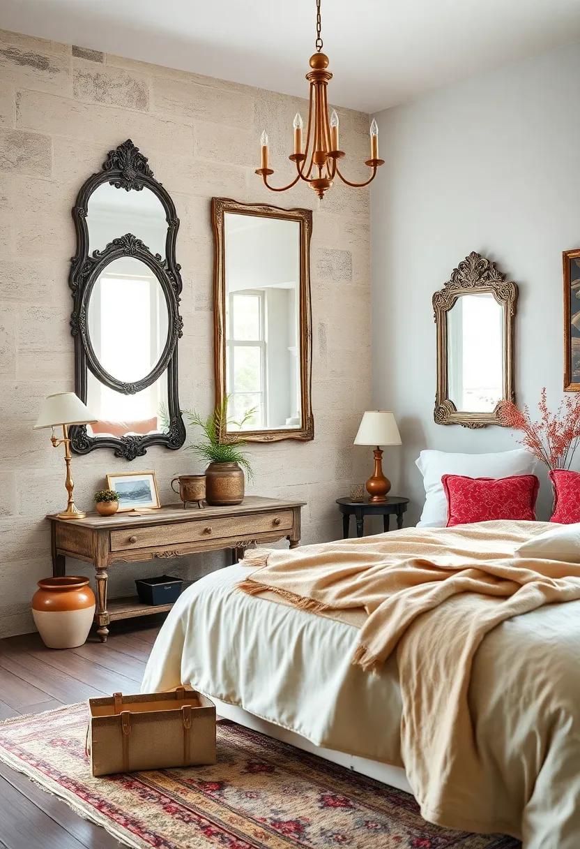 Incorporating vintage mirrors into your farmhouse bedroom can instantly transform the ambiance, bringing a sense of elegance and charm to the space. Whether you opt for ornate frames that exude an antique allure or weathered finishes that tell a story of rustic endurance, these reflective pieces enhance both light and depth.Consider placing a grand, gilded mirror above a rustic wooden dresser to create a striking focal point, or lean a large, distressed mirror against the wall to evoke a modern yet nostalgic feel. The interplay of light shimmering off these mirrors can animate the room, giving it a warm and inviting glow.