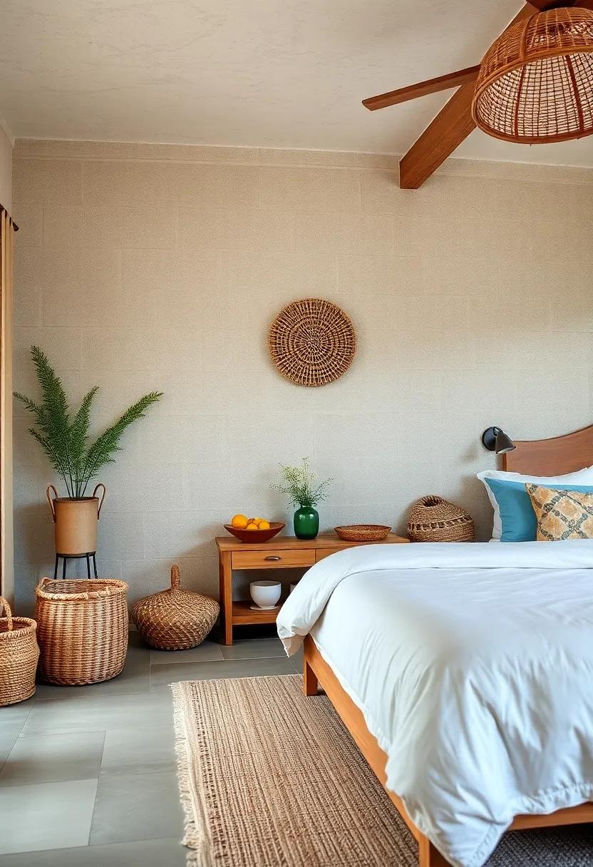 embrace the beauty of natural materials by incorporating wicker or rattan baskets into your farmhouse bedroom decor. These handcrafted storage solutions not only offer a functional purpose but also add a touch of rustic charm. Consider using them for various purposes,such as:
