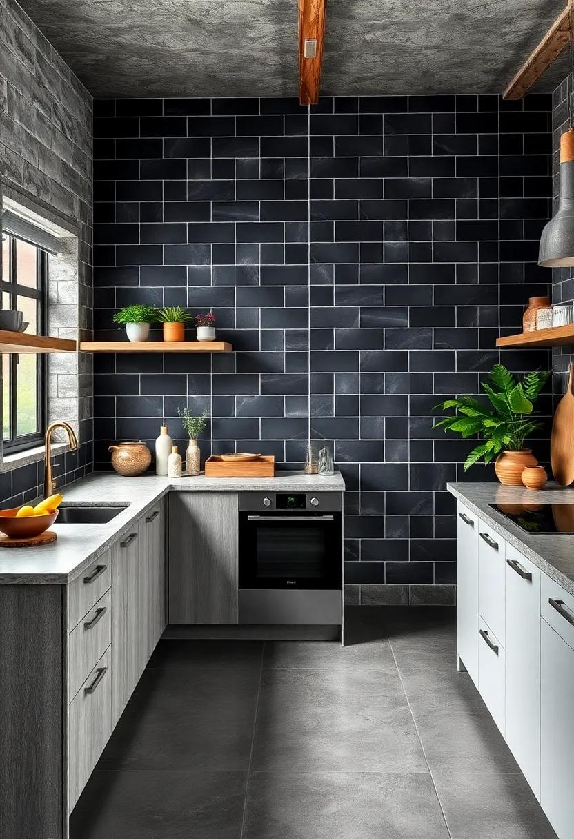 Embracing bold black tiles in your kitchen design can elevate the aesthetic ⁤appeal while providing a striking visual contrast. Black porcelain ⁢tiles or glossy ceramic options create dramatic backdrops that highlight rustic wood elements and brightly colored kitchenware. The deep hue not only adds sophistication but also acts as an anchor, allowing other textures and finishes to shine.⁤ Consider ⁤pairing matte‍ black tiles with stainless ‍steel appliances ⁢for a ‍sleek, cohesive look,⁤ or ​use them with distressed wood cabinets to enhance‍ that wonderfully rustic vibe.