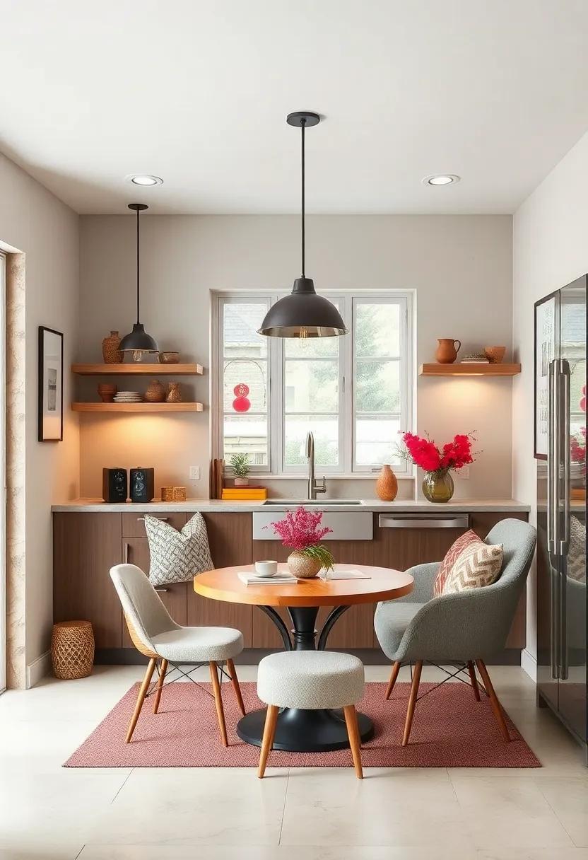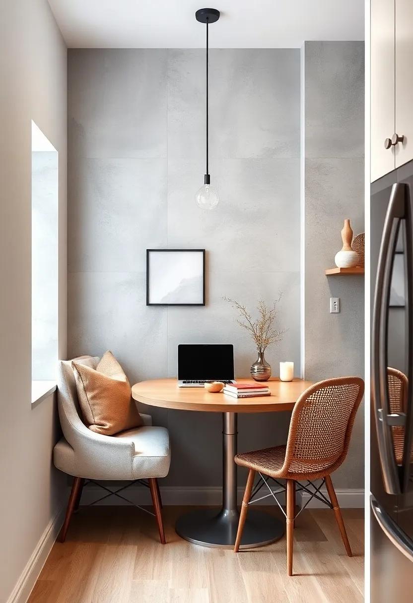 Choosing a circular dining table for your small kitchen nook is a clever way to foster a warm, inviting atmosphere. Its shape naturally encourages conversation, allowing everyone to engage easily without feeling isolated. Opt for a compact design that fits snugly against a wall or in a corner to effectively economize on space. pair your round table with sleek, minimalistic chairs that can be effortlessly tucked away when not in use, keeping the area open and uncluttered. These chairs not only maintain the flow of the room but also enhance the overall aesthetic of your nook.