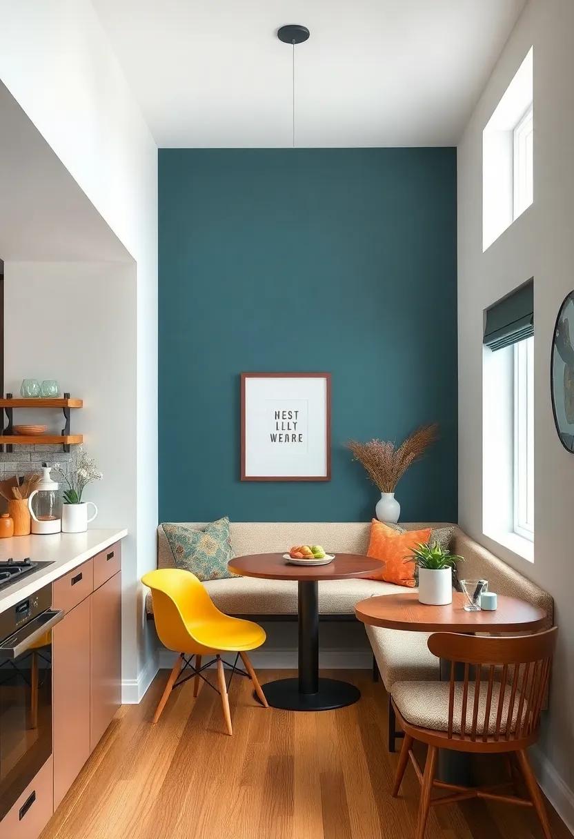Colorful Accent Wall: Paint an accent wall in a bold color or pattern to create a focal point in your small kitchen nook, adding character and warmth