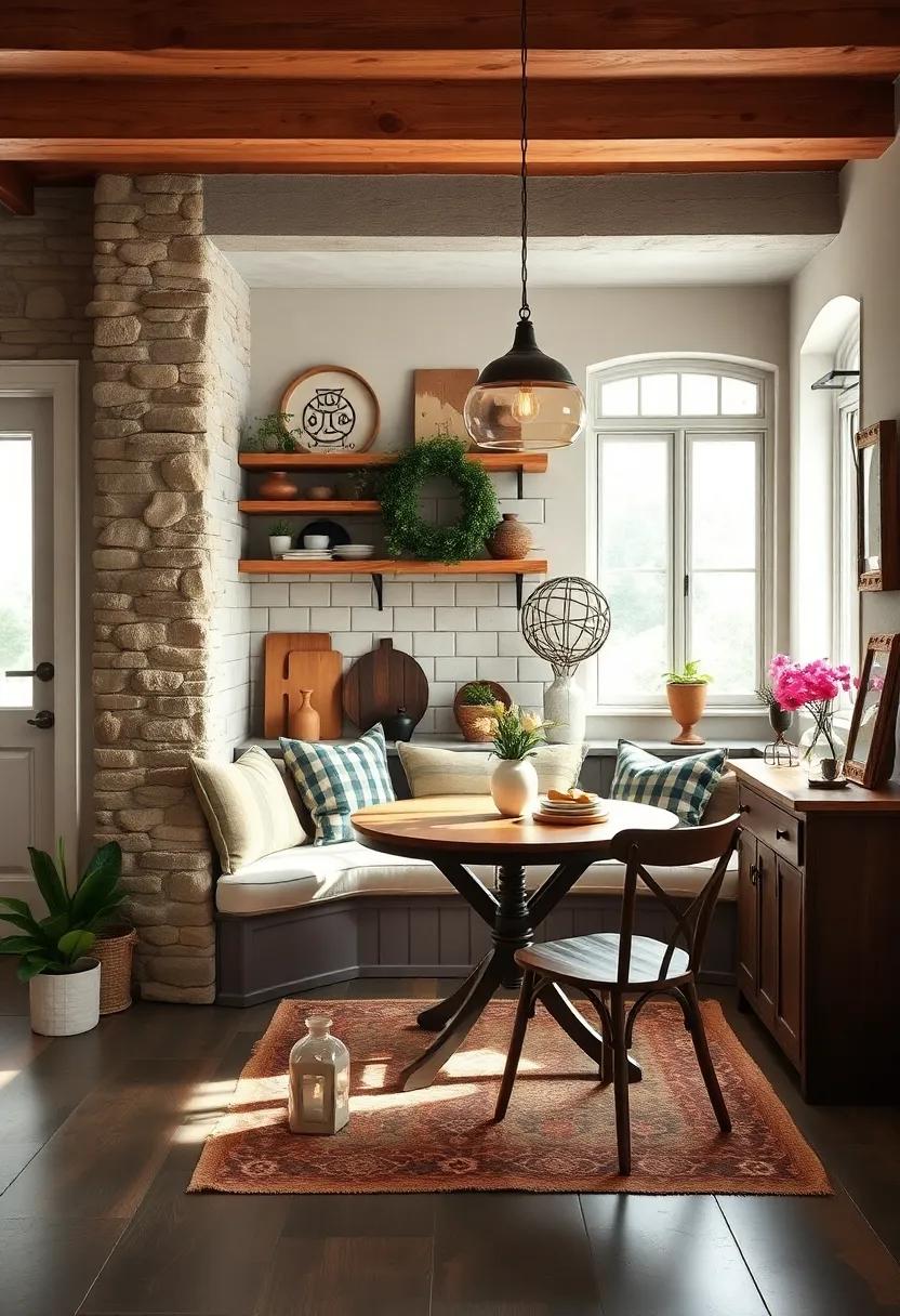 Enhance the rustic feel by accessorizing with charming finds from local flea markets or thrift stores. Fill your nook with vintage décor such as old scales, mason jars, or an aged chalkboard for daily menus or inspirational quotes. Soft textiles, like plaid table runners or burlap cushions, can add a touch of comfort. For a cohesive look, incorporate a color palette inspired by nature—think earth tones complemented by gentle whites and blues to keep the space feeling open yet intimate.