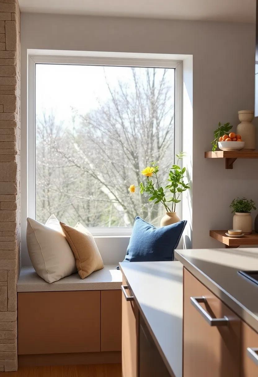 To amplify the charm of your window seat nook, think about incorporating elements that invite tranquility and joy. Indoor plants can add freshness to the space, while a small sconce or pendant light can enhance the ambiance during evening hours. Consider a built-in bookshelf that wraps around, filled with your favorite cookbooks or novels to make the nook not only a place for rest but also for inspiration. For a grounding effect, use a woven rug beneath the seat to tie the area together visually. With thoughtful details and a personal touch, your cozy window seat can become the perfect haven for enjoying quiet moments throughout the day.