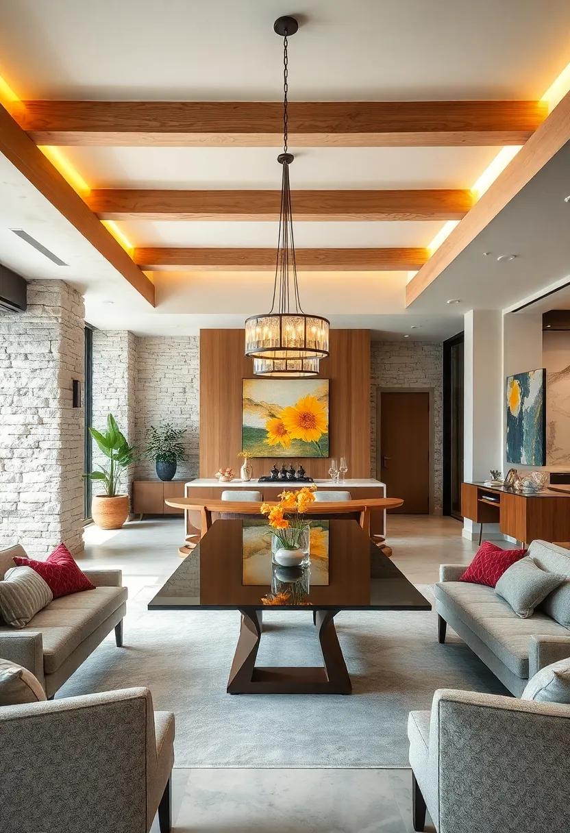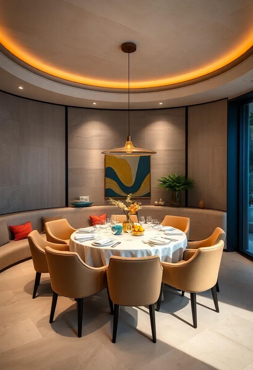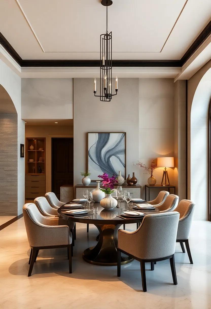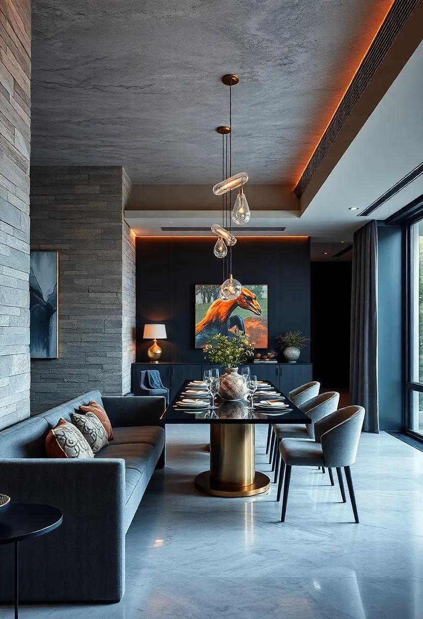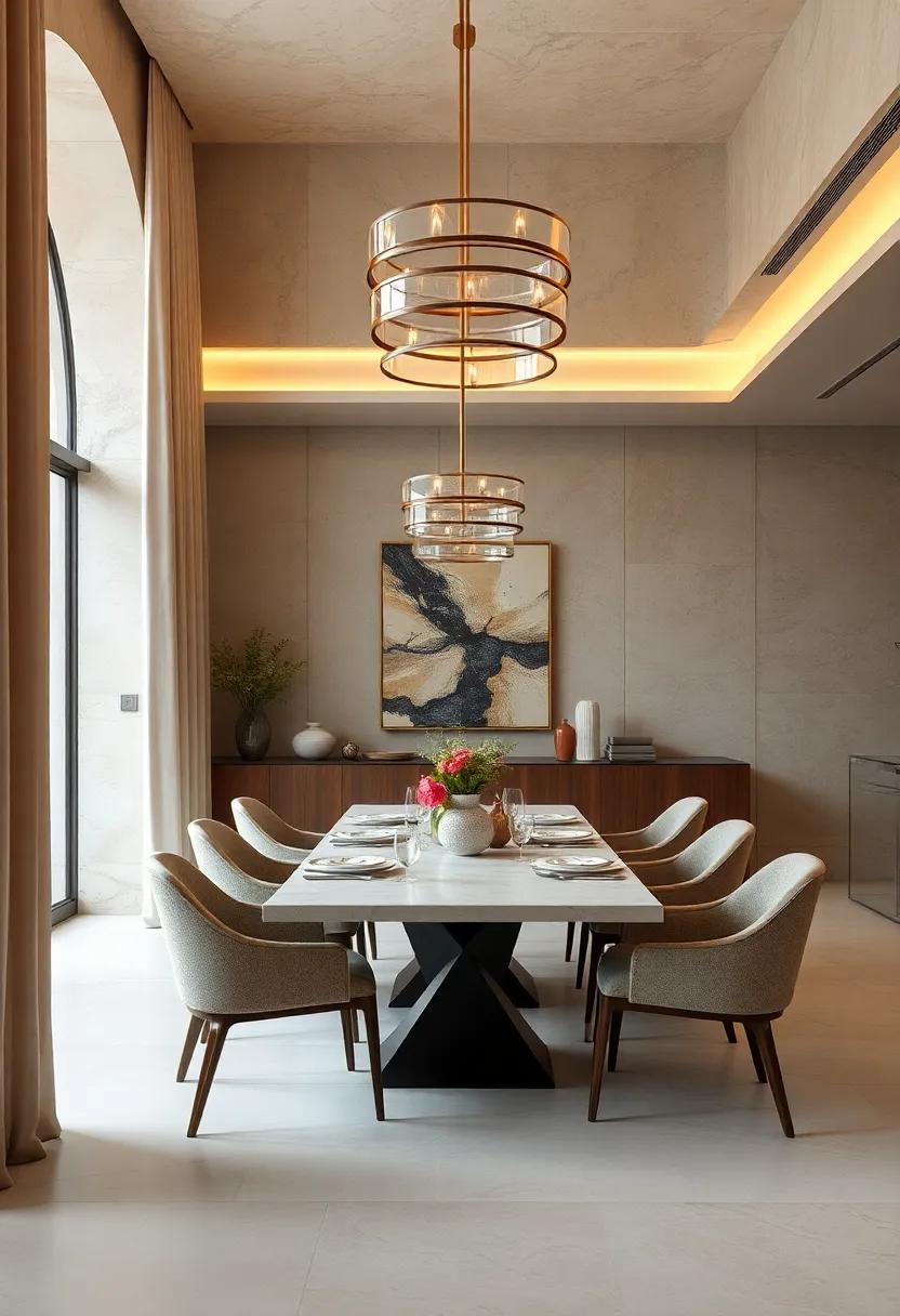 Incorporating sculptural elements into light fixtures and furniture transforms a dining area into a canvas of creativity. Unique chandeliers dangle gracefully from above, their forms echoing natural motifs or abstract designs that spark conversation. meanwhile, tables shaped with organic curves or angular edges serve not just as a place for meals, but as striking sculptures in their own right. The interplay of shadow and light creates a dynamic atmosphere, inviting guests to embrace their artistic tendencies while indulging in each culinary experience.