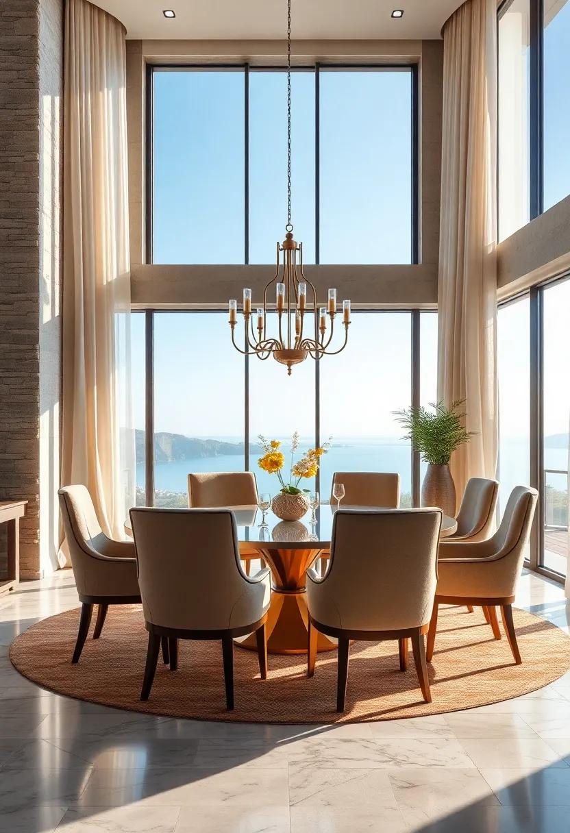 Above the dining table, a custom-designed light fixture acts as a magnificent centerpiece, enmeshing functionality and artistry. Opting for unique, sculptural designs not only illuminates the space but also serves as a statement piece that reflects personal taste and artistic sensibility. Think bold geometric shapes crafted from high-end materials, or intricate metalwork that casts delicate shadows across the table. This intersection of craftsmanship and illumination can elevate the dining experience, inviting guests to linger longer in a space that exudes sophistication and refined elegance.