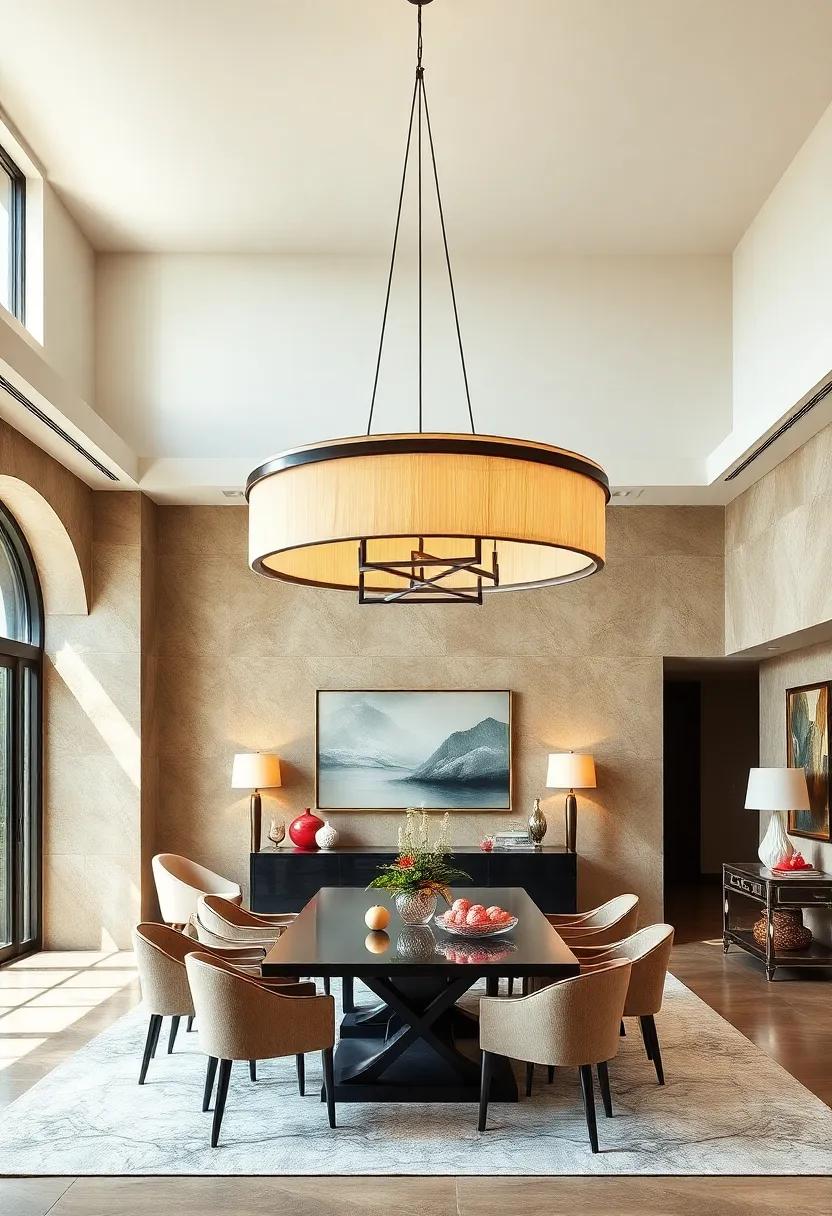 In a dining room that boasts soaring ceilings, an oversized statement light fixture transforms the space into a captivating focal point. The careful selection of such a lighting piece not only illuminates the room but also elevates its overall ambiance. These grand fixtures frequently enough feature stunning designs and intricate craftsmanship, serving as a testament to both style and sophistication.Consider the impact of various materials and finishes—whether a shimmering crystal chandelier that cascades down, reflecting light in enchanting patterns, or an avant-garde sculptural piece that marries boldness with elegance.Each selection should echo the room’s aesthetic, creating a dialogue between the fixture and the surrounding decor.