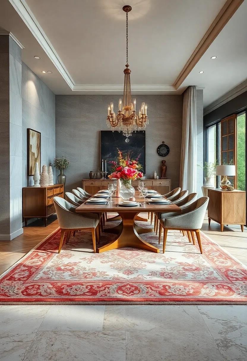 The juxtaposition of styles creates a layered aesthetic,where mid-century chairs embrace a modern touch,seamlessly integrating with antique sideboards that whisper of history. This eclectic mix fosters an atmosphere that is both inviting and refined, inviting conversations and culinary delights alike. the interplay of colors and materials in this space serves to accentuate the rich textures of the rug, ensuring that every element contributes to the overall grandeur. Below is a visual depiction of how various elements blend together to create this sophisticated dining experience: