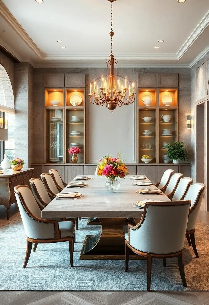 Furniture pieces, such as custom-designed chairs and artistic sideboards, further enhance the room’s aesthetic appeal. Each item is carefully chosen for its ability to harmonize with the overall decor yet stand out as a work of art. For instance,a sideboard featuring intricately carved textures becomes a focal point,displaying both form and function. The textures and lines lend a tactile quality that encourages interaction, ensuring the space is not just seen but felt. This blend of artistic elegance and practicality creates an environment that celebrates both the joy of dining and the beauty of design.