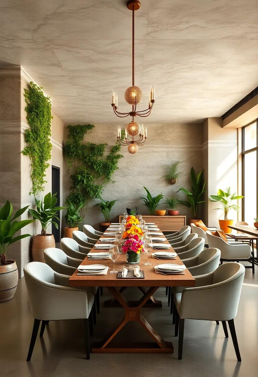 In this stunning dining area, vertical gardens become a breathtaking focal point, effortlessly blending nature’s artistry with refined dining elegance. these living walls not only purify the air but also introduce a vibrant palette of greens, inviting the outdoors in and creating a calming atmosphere. The interplay of organic materials—from reclaimed wood accents to natural stone tabletops—infuses the space with warmth, inviting guests to linger and savor each moment. Here, the lingering scents of fresh herbs from the vertical garden tease the senses, marrying culinary experience with environmental consciousness.