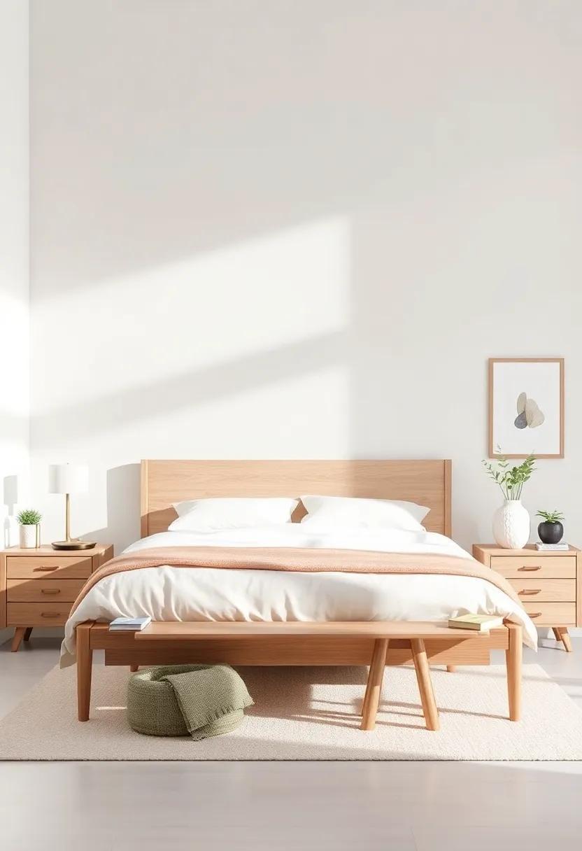 Scandi-Style Bed Frame – Opt for a Scandinavian-inspired bed frame with clean lines and natural wood finishes to bring warmth and simplicity into your room