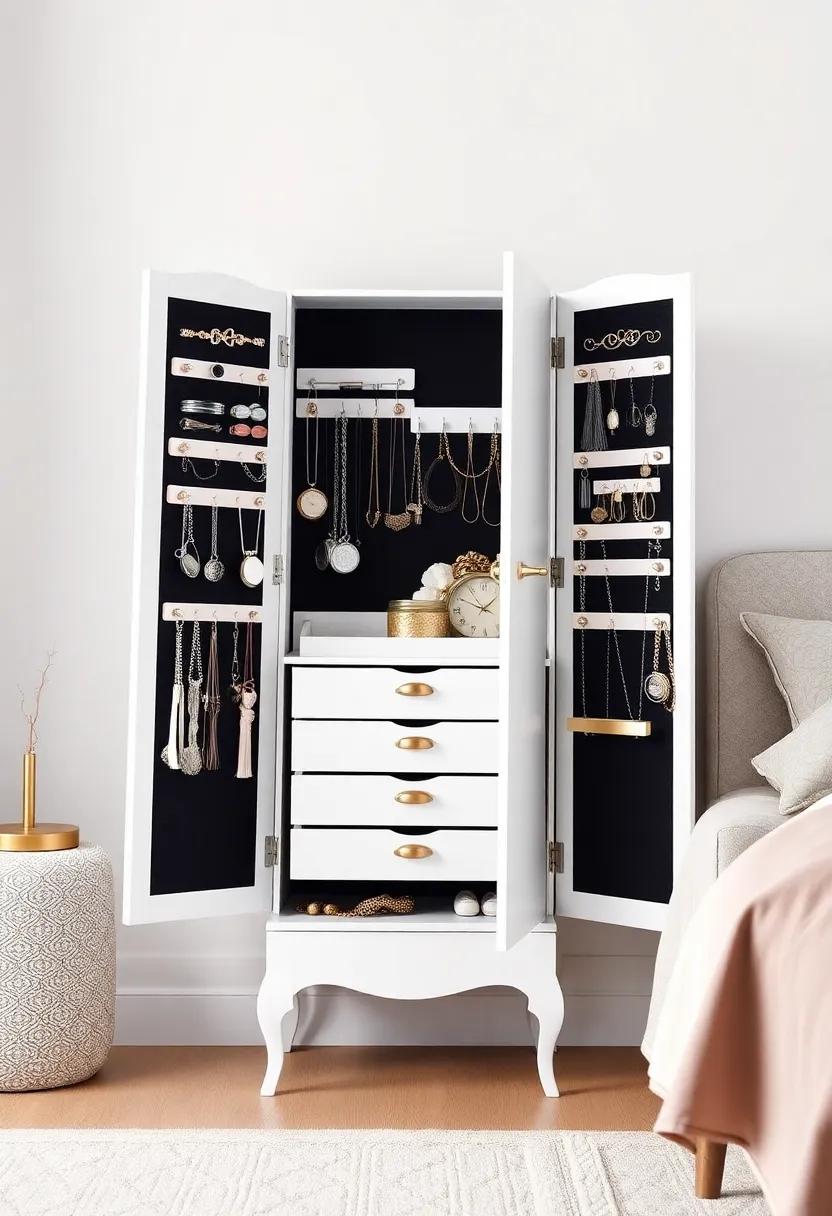 Elegant Jewelry Armoire – Keep your accessories organized and tangle-free with an elegant jewelry armoire that doubles as a chic decor accent