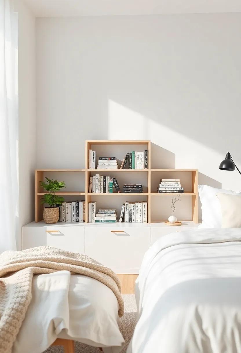 Transform your bedroom into a stylish sanctuary by incorporating floating shelves that make a statement while saving precious floor space. These minimalist pieces can serve a multitude of purposes, offering an eye-catching way to display both personal treasures and essential items. Consider installing shelves at varying heights to create visual interest and integrate unique decor elements, such as: