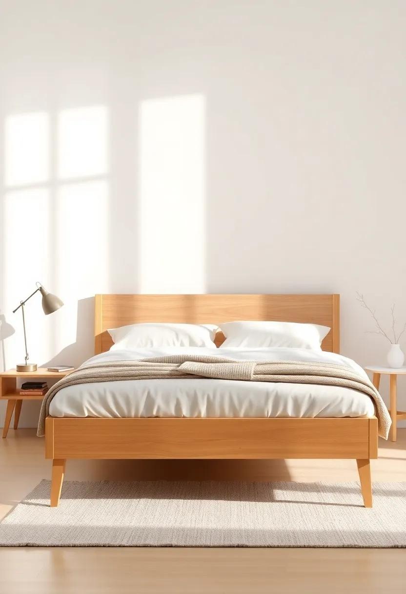 Scandi-Style Bed Frame – Opt for a Scandinavian-inspired bed frame with clean lines and natural wood finishes to bring warmth and simplicity into your room