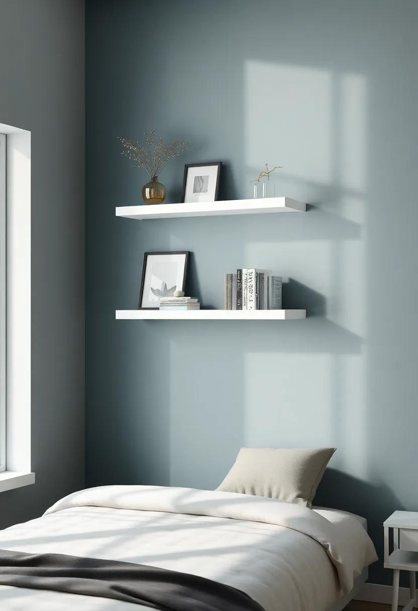 Simple Floating Shelves – Utilize vertical space with sleek floating shelves to display your favorite books or decorative items,enhancing both style and organization