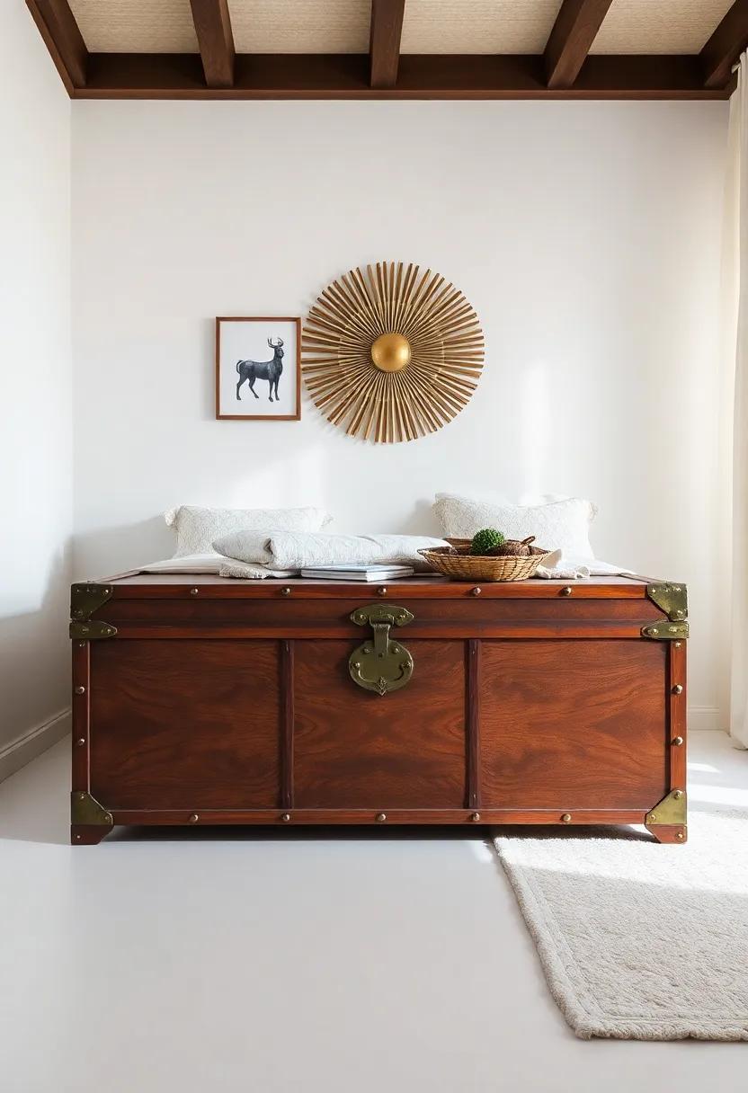 Vintage-Style Chest – Incorporate character into your bedroom with a vintage-style trunk or chest that doubles as storage and a unique decorative element
