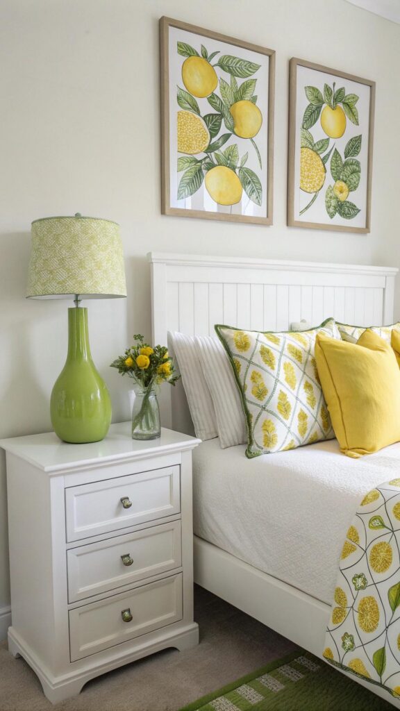 Mix motifs inspired by citrus fruits, such as lime-patterned ceramics or lemon-printed cushions, to keep the mood lively yet balanced against neutral backdrops.