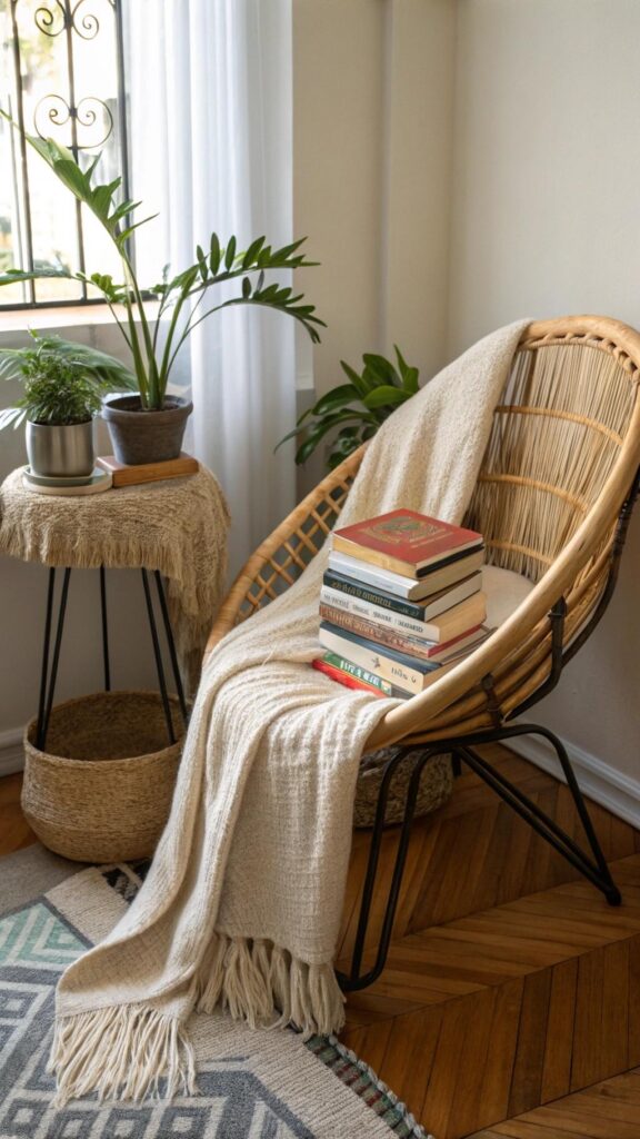 This nook becomes a personal oasis for leisurely afternoons under natural light.