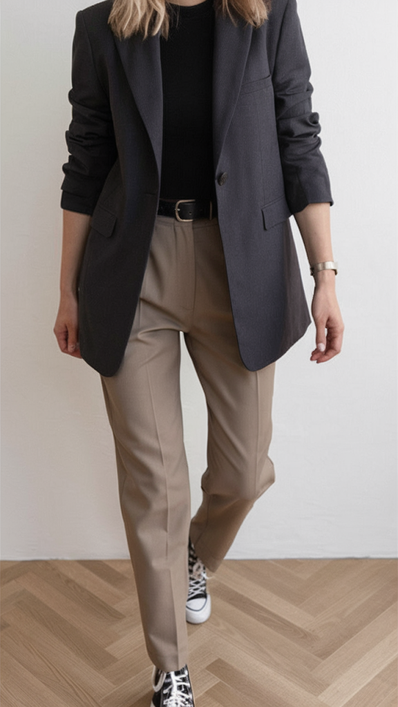 - Blazer: Slim, slightly oversized charcoal for modern sharpness.