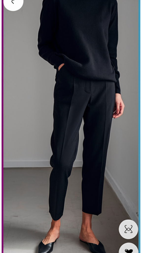 - Trousers: High-waisted with tailored seams, flattering multiple body types.
