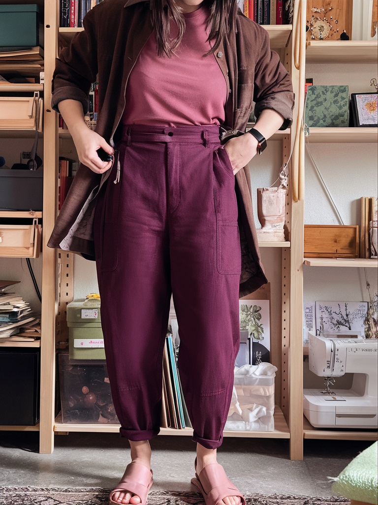 - Wide-leg khaki pants: Relaxed, elegant structure.
