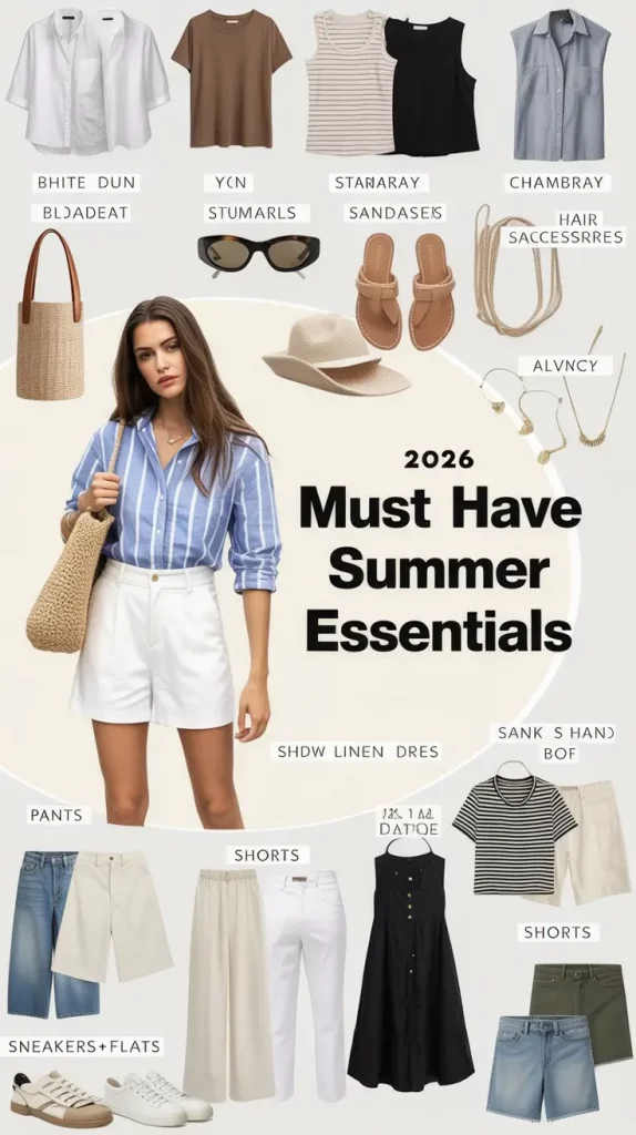 The ambiance these pieces evoke is warm and uplifting. A white linen dress radiates sunlit breeziness, while denim shorts anchor outfits in real-life practicality. Accessories like straw hats, sleek totes, and minimalist sandals blend warmth with subtlety. It strikes a perfect balance—an aspiration echoed in many summer capsule casual style ideas.