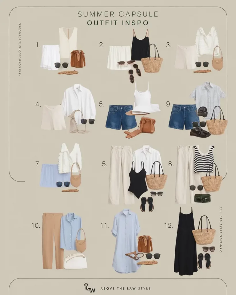 This segment perfectly encapsulates summer capsule casual style’s versatility. A loafer substitutes a sandal; a leather bag replaces a tote, instantly shifting appearance. Sometimes, elegance is simply knowing when to stop.