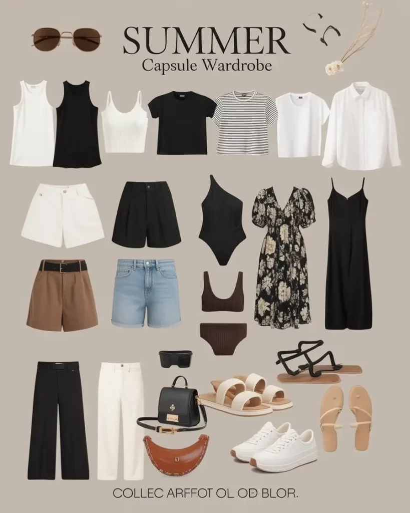 The final curated capsule exemplifies poised, grounded ease—a delicate balance between sophistication and simplicity. Imagine a sleeveless black top with denim shorts, a tailored blazer layered over a slip dress, or sharp white separates—pieces that multiply in versatility.