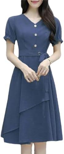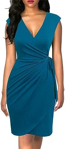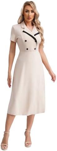 Dresses for Women V-Neck Short Sleeve Work Midi Dress Work Office Business Dress